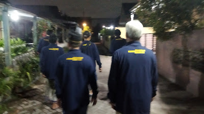 Setelah kumpul santai sambil ngobrol dan ngopi, para personil ronda — Lik Timan, Lik Nar, Lik Nardi, Lik Iksan, Lik Was, Lik Rus, Lik Urip, dan tentu saja tuan rumah Pak Fikri — langsung lanjut aksi keliling kampung ambil jimpitan.